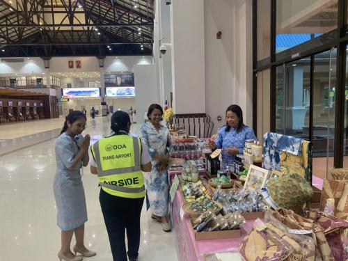 วันที่ 5 กันยายน 2568 ณ อาคารผู้โดยสารหลังใหม่ ท่าอากาศยานตรัง นางสาวนวภัทร หอมหวล พัฒนาการจังหวัดตรัง มอบหมายให้นางสาววะดี จักรราช ผู้อำนวยการกลุ่มงานส่งเสริมการพัฒนาชุมชน เยี่ยมชมบูธจัดแสดงและจำหน่ายสินค้า OTOP ภายในอาคารผู้โดยสารหลังใหม่ ท่าอากาศยานตรัง ซึ่งเปิดใช้อย่างไม่เป็นทางการวันนี้วันแรก