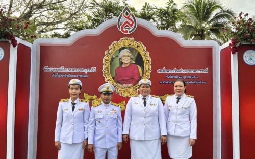 ในการนี้ สำนักงานพัฒนาชุมชนจังหวัดตรัง โดยนางสาวนวภัทร หอมหวล พัฒนาการจังหวัดตรัง มอบหมายให้ นางสาวปิ่นปินัทธ์ รักสกุล นักวิชาการพัฒนาชุมชนชำนาญการพิเศษ ผู้ช่วยผู้อำนวยการกลุ่มงานส่งเสริมการพัฒนาชุมชน นำบุคลากรสำนักงานพัฒนาชุมชนจังหวัดตรัง เข้าร่วมพิธี สมเด็จพระศรีนครินทราบรมราชชนนี หรือ “ สมเด็จย่า ” ผู้ทรงงานเพื่อปวงชนชาวไทย ทรงอุทิศพระองค์เพื่อช่วยเหลือราษฎร โดยเฉพาะด้านสุขภาพอนามัย ทรงเล็งเห็นถึงปัญหาต่าง ๆ ด้านสาธารณสุขในท้องถิ่นทุรกันดาร ทั้งในด้านการส่งเสริมสุขภาพอนามัย การป้องกันการเจ็บป่วย การรักษาและการฟื้นฟูสมรรถภาพร่างกายของเด็ก ผู้สูงอายุ ตลอดจนประชาชนทั่วไป ทรงพระราชทานพระราชานุเคราะห์แก่มูลนิธิ และองค์กรการกุศลต่าง ๆ มาโดยตลอด ด้วยทรงมีพระราชปณิธานและพระราชหฤทัยอันแน่วแน่ในการช่วยเหลือประชาชนให้พ้นทุกข์ ทรงริเริ่มโครงการบริการสาธารณสุขที่เอื้อประโยชน์ต่อประชาชน